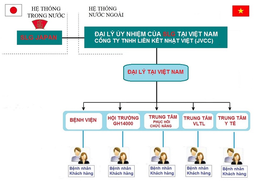 Tại Nhật Bản: Tập đoàn SLG được phân phối thông qua hệ thống các Hội trường trải nghiệm có mặt trên 47 tỉnh thành và nhiều bệnh viện lớn.