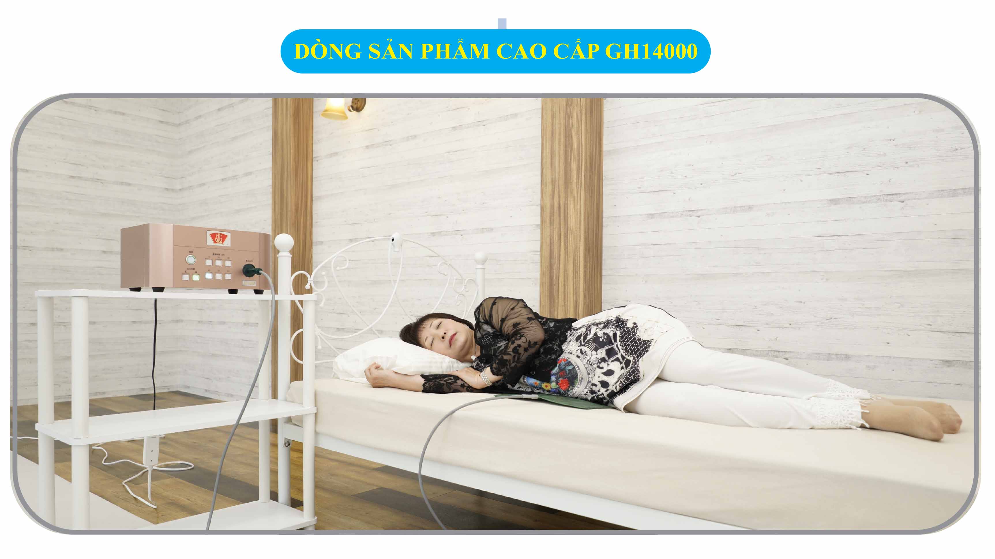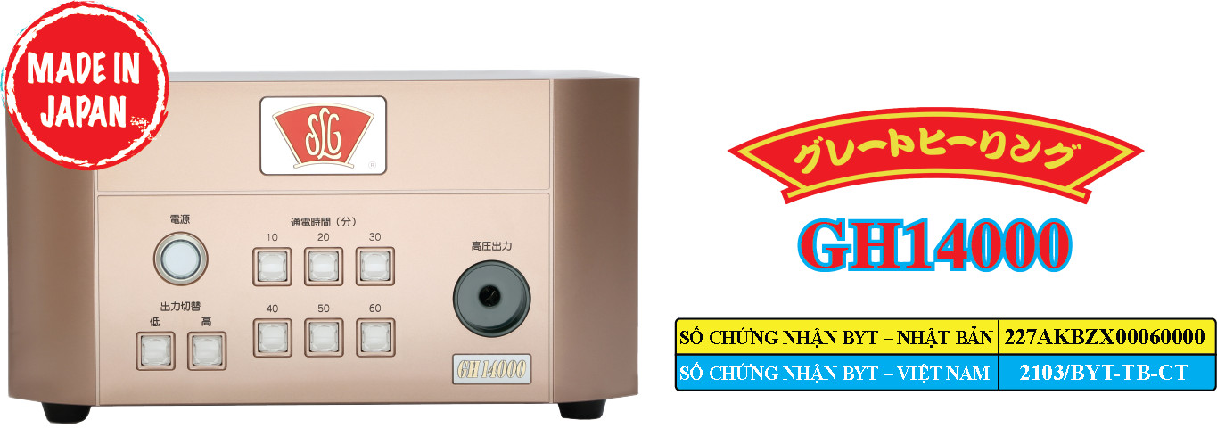 - Thiết bị trị liệu cao cấp GH14000 được sản xuất 100% từ Nhật Bản theo công nghệ tiên tiến nhất hiện nay. Sản phẩm duy nhất tại Nhật tạo ra được tỷ lệ điện sinh thể -75% + 25% (3 âm 1 dương) tương thích với điện sinh thể của con người.