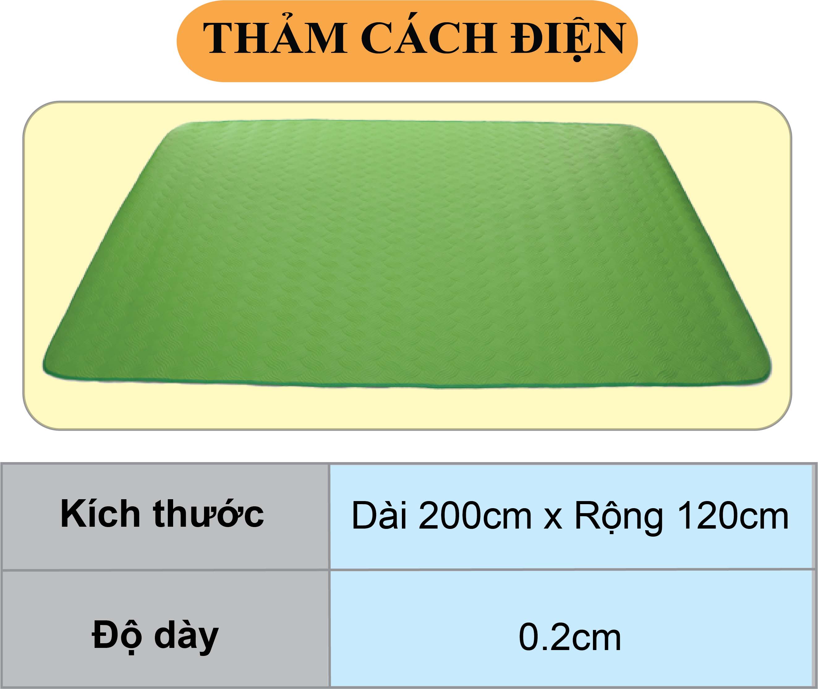- Thảm cách điện được sản xuất từ tơ sợi tổng hợp có tác dụng cách điện tốt nhất để đảm bảo hiệu quả khi trị liệu.