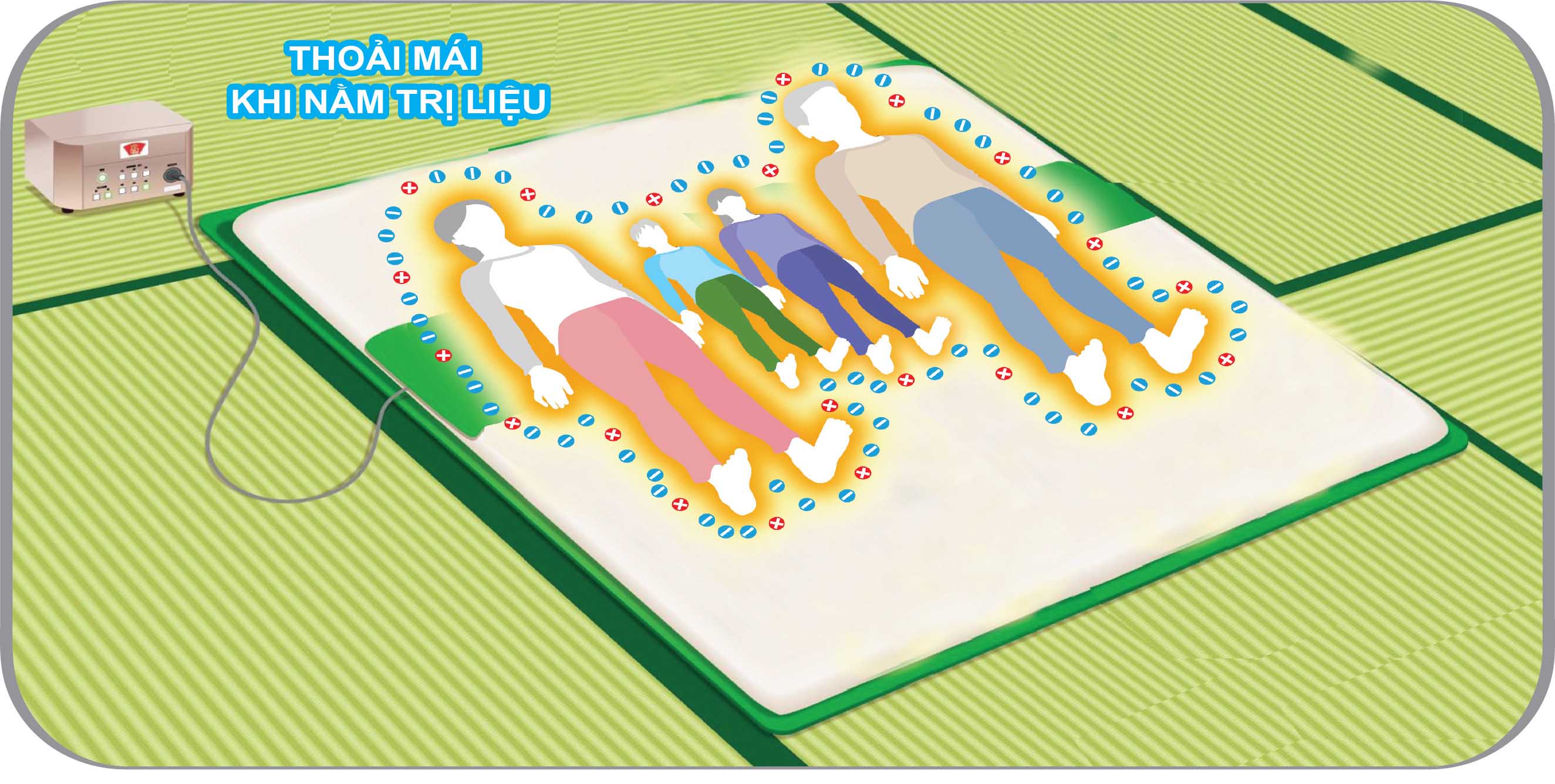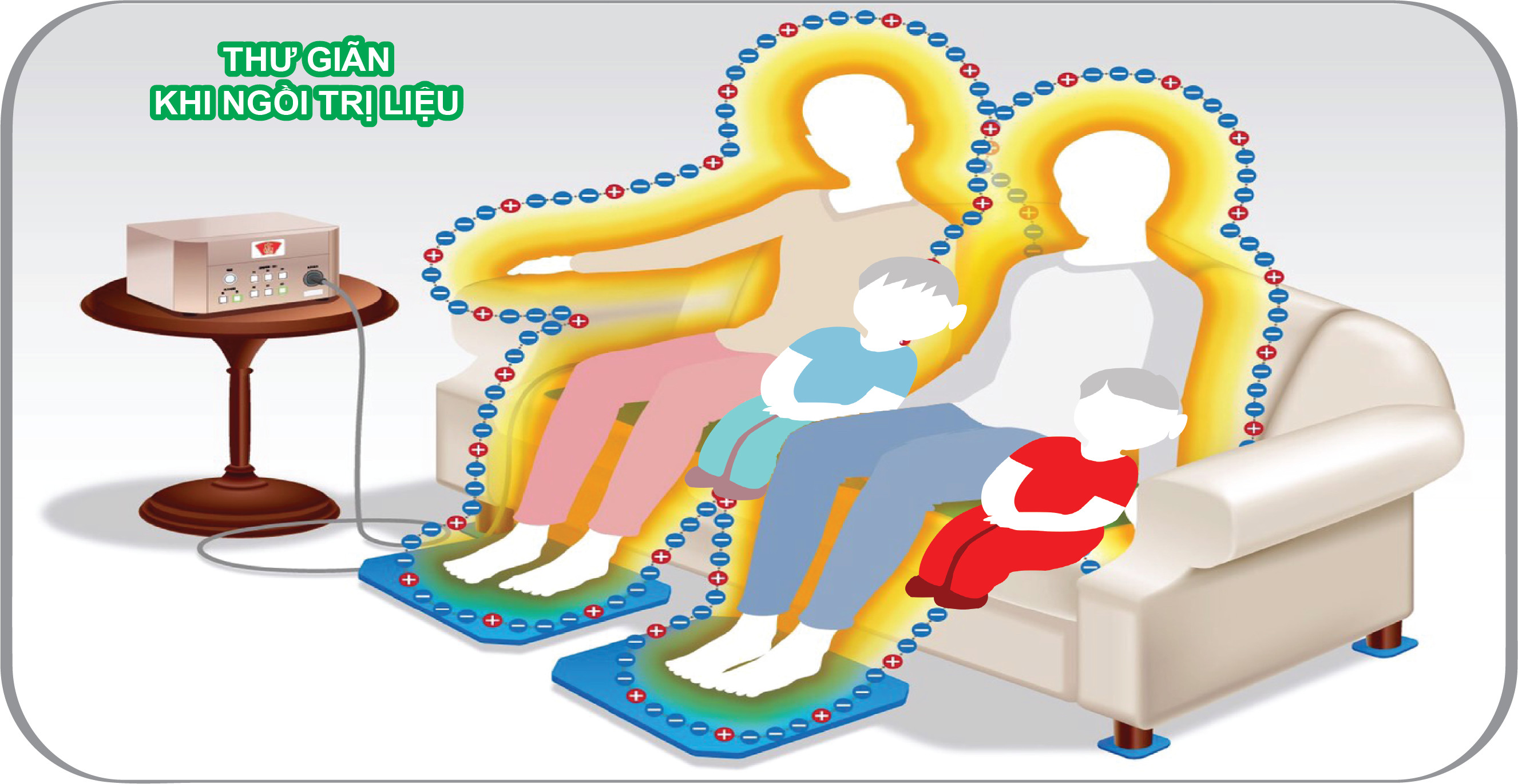 Có thể vừa nghỉ ngơi vừa trị liệu thư giãn, đọc báo, xem tivi, trò chuyện, xem điện thoại.., và cuối cùng khi đi ngủ cài đặt thời gian trị liệu và thiết bị sẽ tự động tắt.